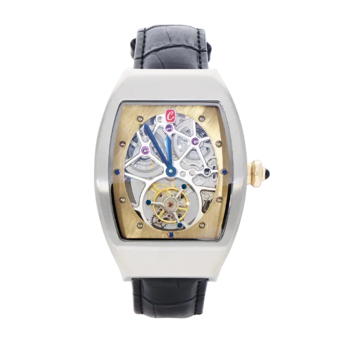 a precision‑engineered watch driven by a commanding suspended tourbillon, fortified with gemstone‑set detailing and sculpted with bold intent for those who lead with strength and individuality.