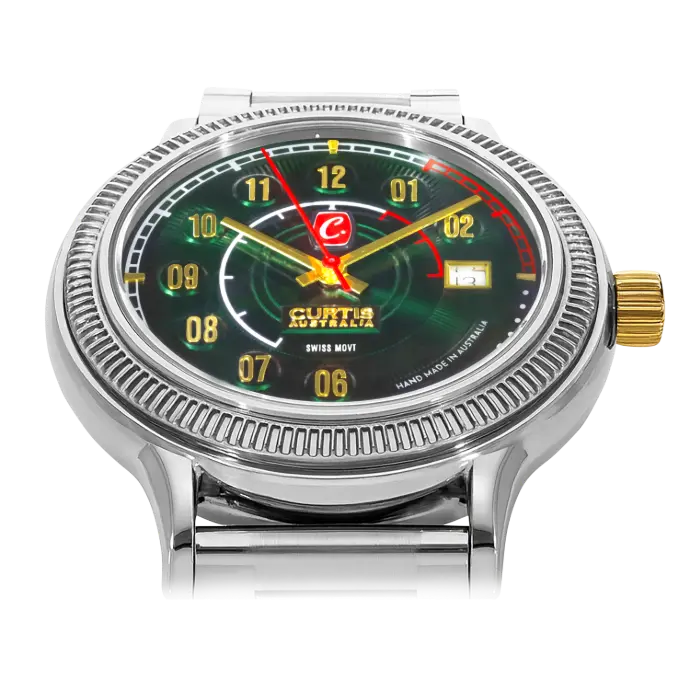 Australian made by us, with a choice of single tone or two tone stainless steel bracelet or leather band, combined with a choice of five different dial options. The leather band is fitted with a convenient deployment clasp for quick and easy on and off. The gently curved case makes for a comfortable fit, while the three step crown makes your Motima RT easy to adjust, including a convenient quick change date feature. It’s secure too – the robust solid gold screw down / lock down crown mechanism protects your watch.