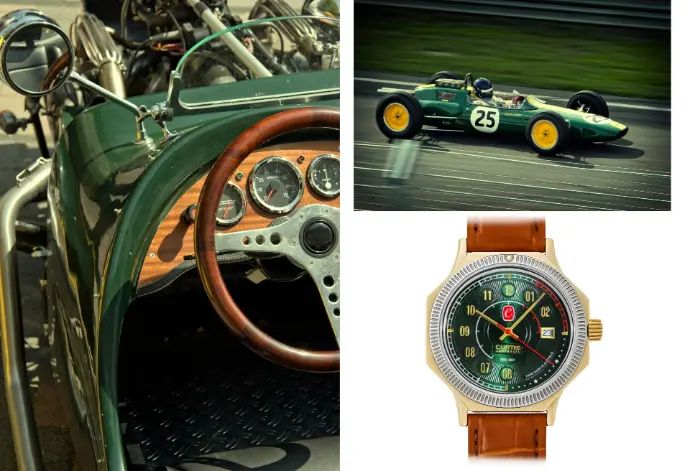 With a finely detailed "British Racing Green" dial, this particular Motima XT has a solid 9ct yellow gold case and a stainless steel bezel and engraved case back.
